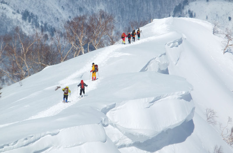 雪面のトラバースもありスノーシューでは危険で、アイゼンが必要だろう。
