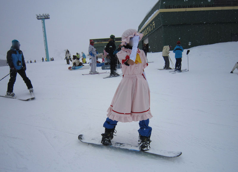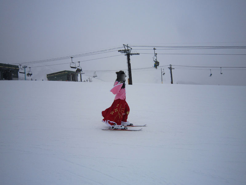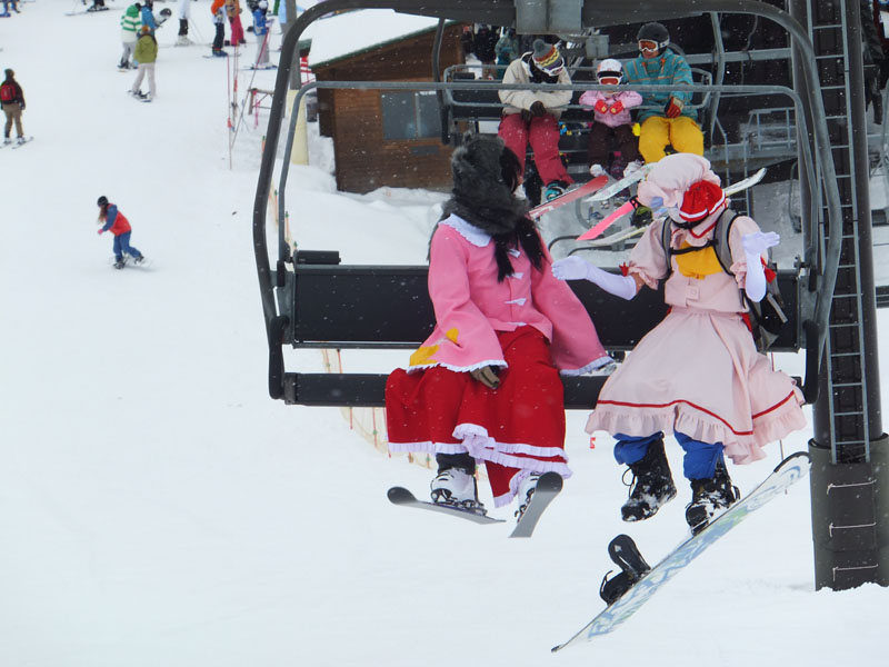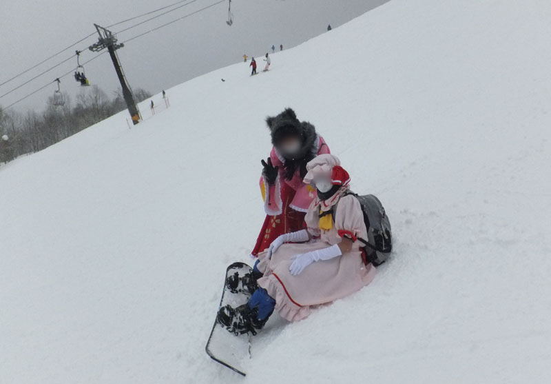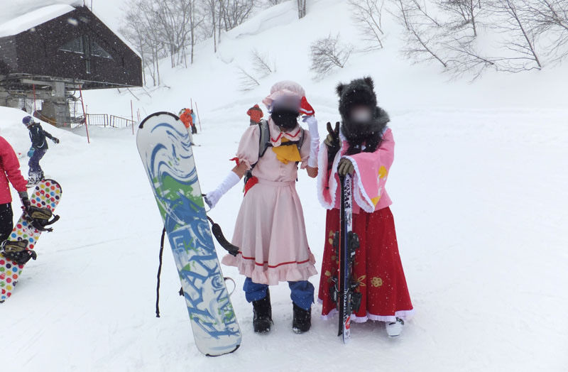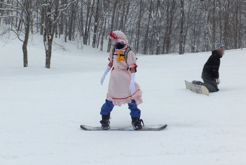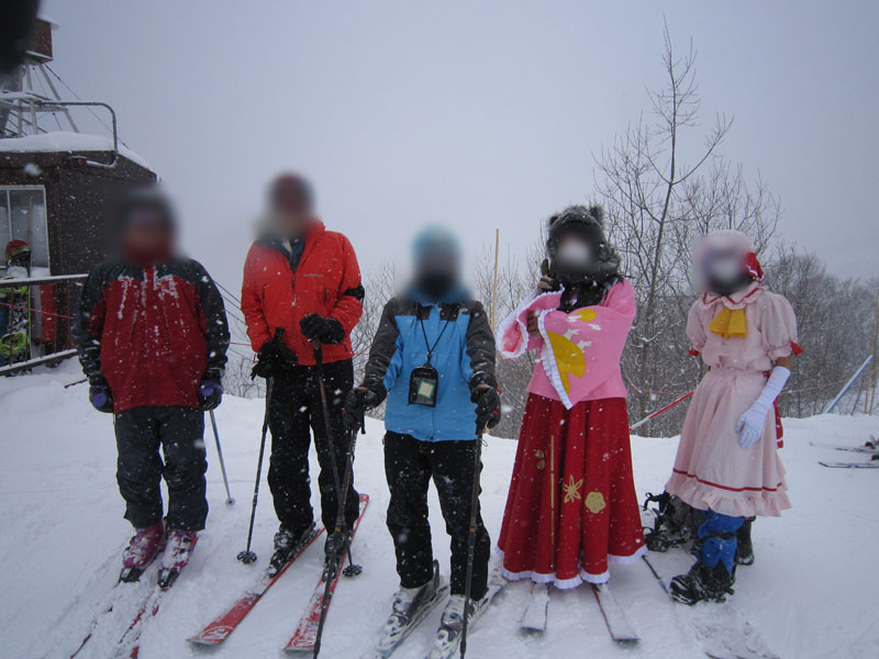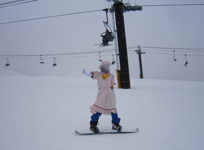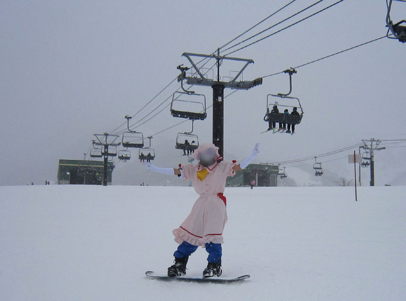 で、前々から打ち合わせを行っていた、コスプレスキー滑走である。