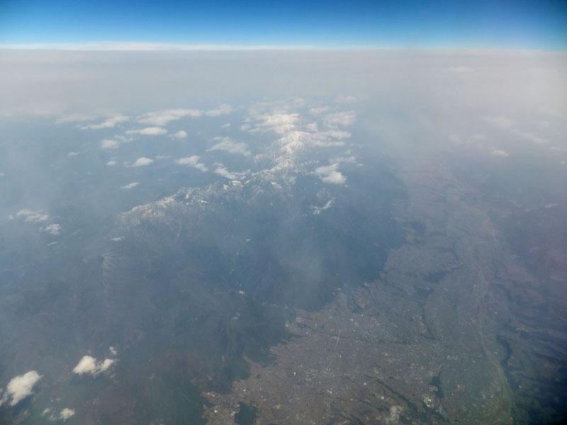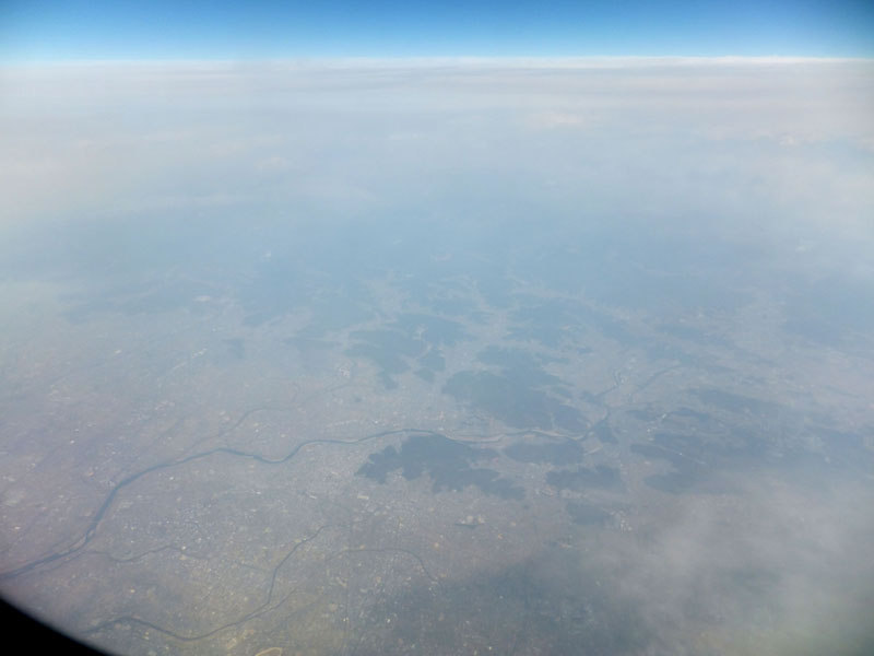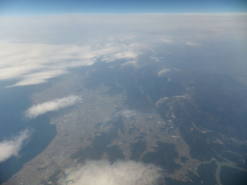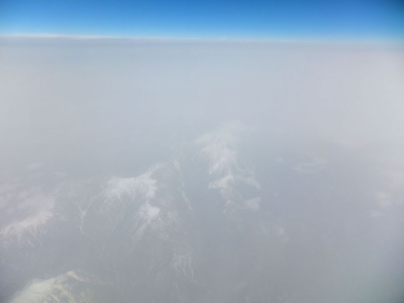 南アルプス上空は薄曇りでなにも見えない。