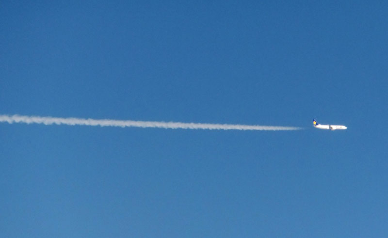 派手に飛行機雲を曳いて飛んでおりかっこいい。