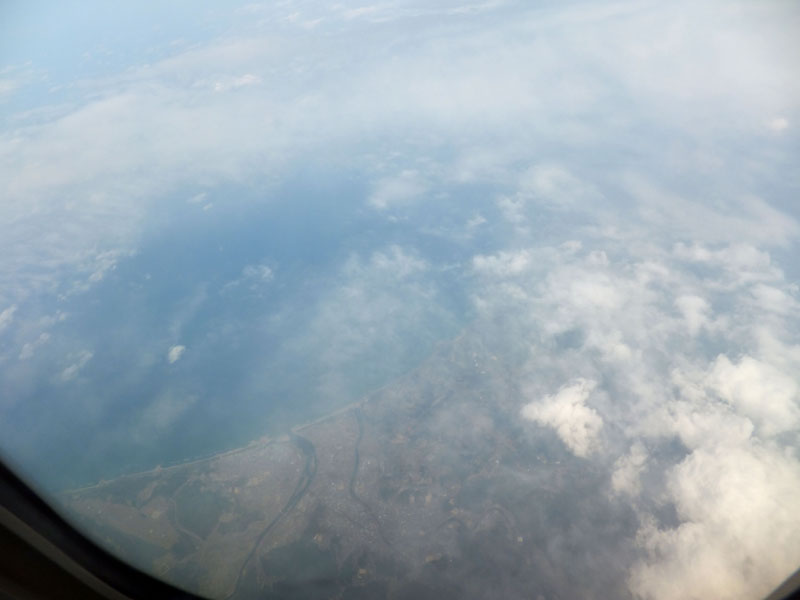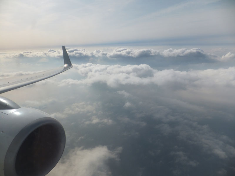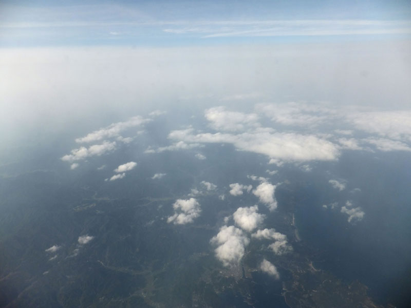雲がやや多い中を羽田へ降下。幻想的な飛行となる。