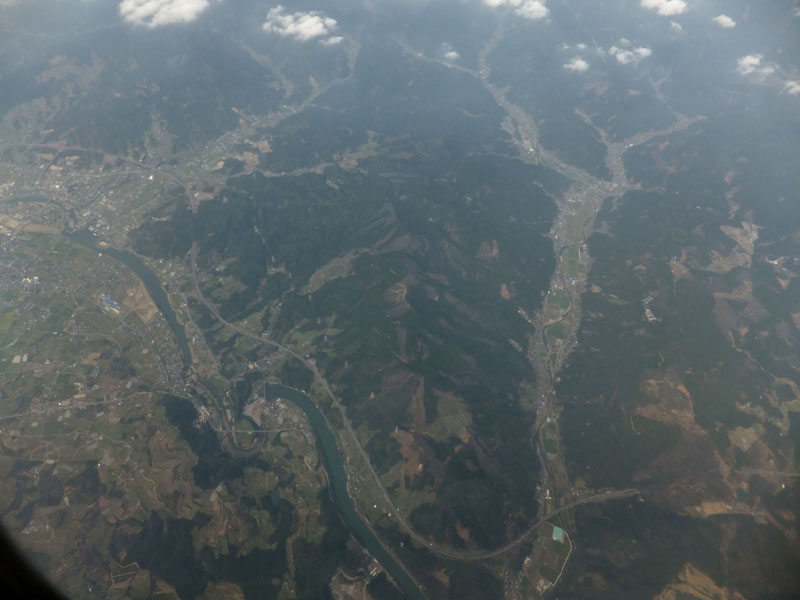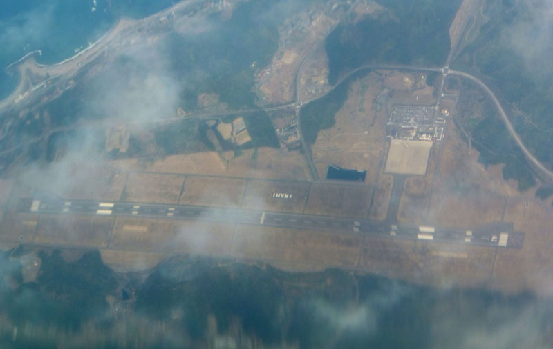 石見空港の直上を通るのは初めて。ちゃんとIWAMIと書いてあるのが確認できる。