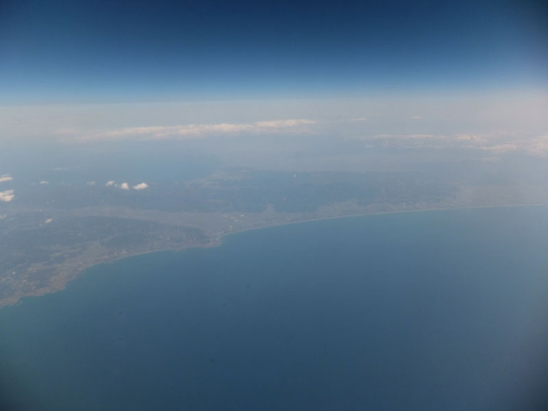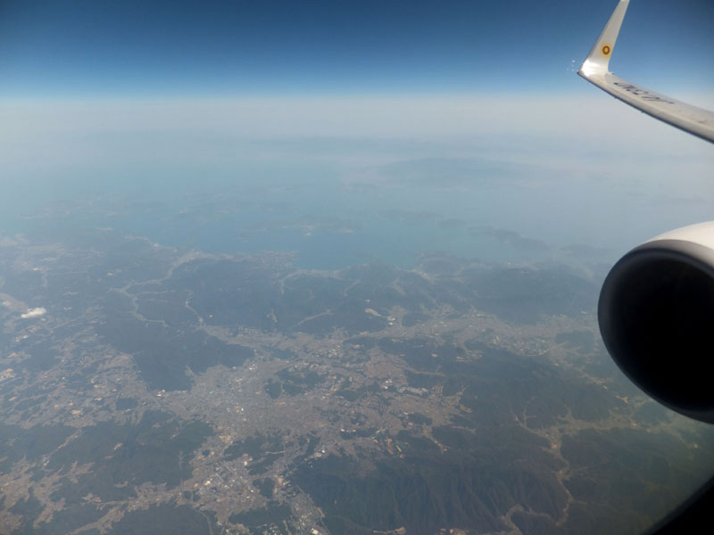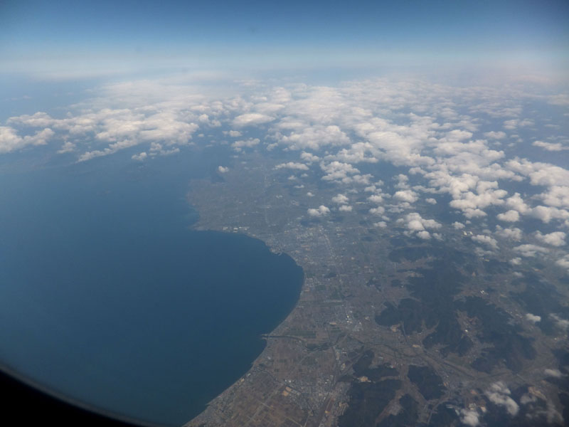 鳥取上空を通過。砂丘もはっきり確認できる。