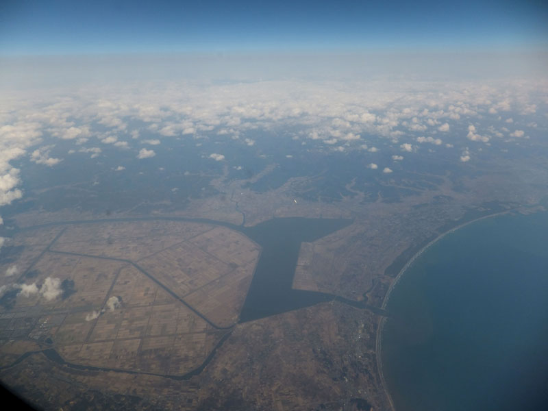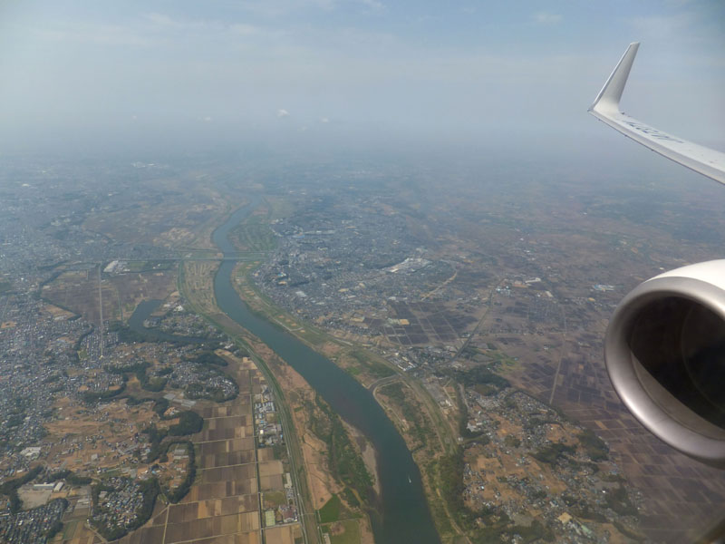 高度を下げ羽田へ。利根川を横断。