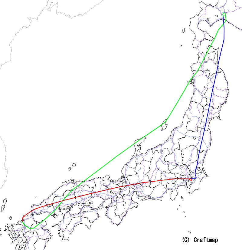 福岡から新千歳へ一気に1400km以上(飛行距離では1600kmくらい)だ。