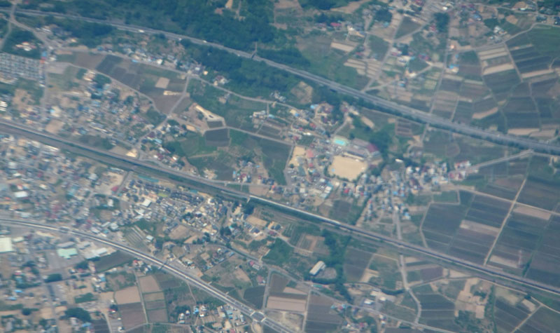 福島白石蔵王間で、東北新幹線と東北道が平行する。