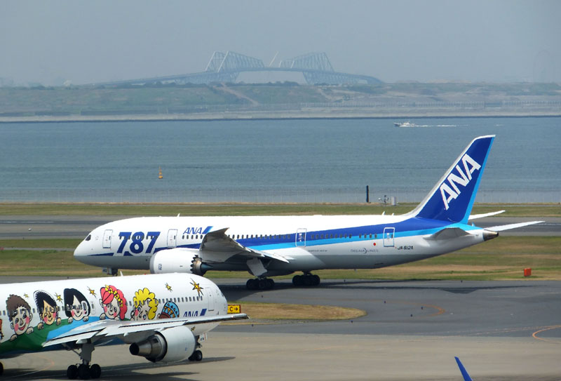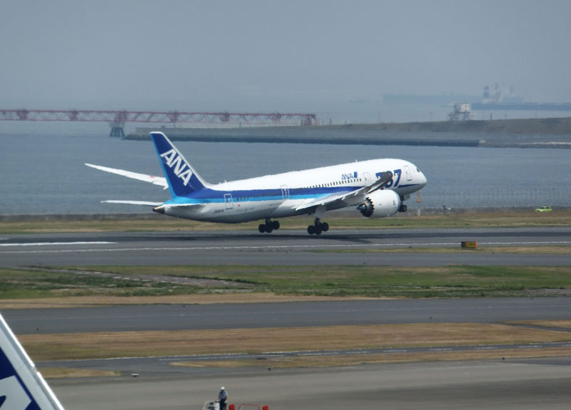 B787も運行再開になってよかったな。背景は東京ゲートブリッジ。