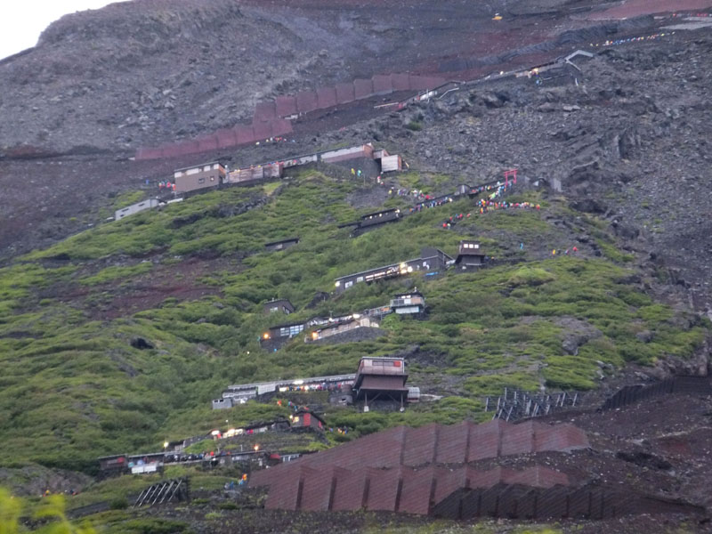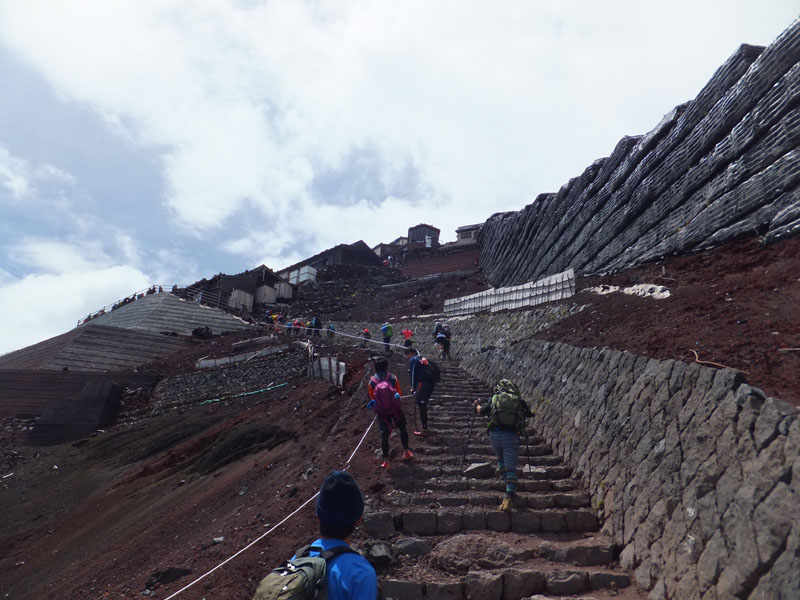 6合目より上を見る。この天気でも多くの人が登っている。