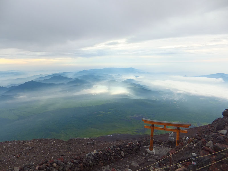 翌朝。夜は雨が降ったようで、ご来光待ちの人は大変だったようだ。