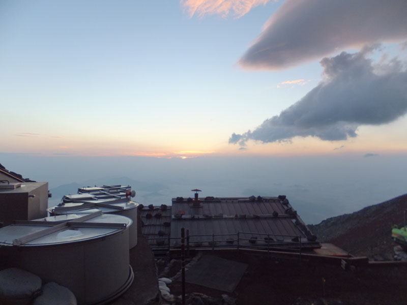 8合目以上には笠雲が掛かっており暴風雨の予感。