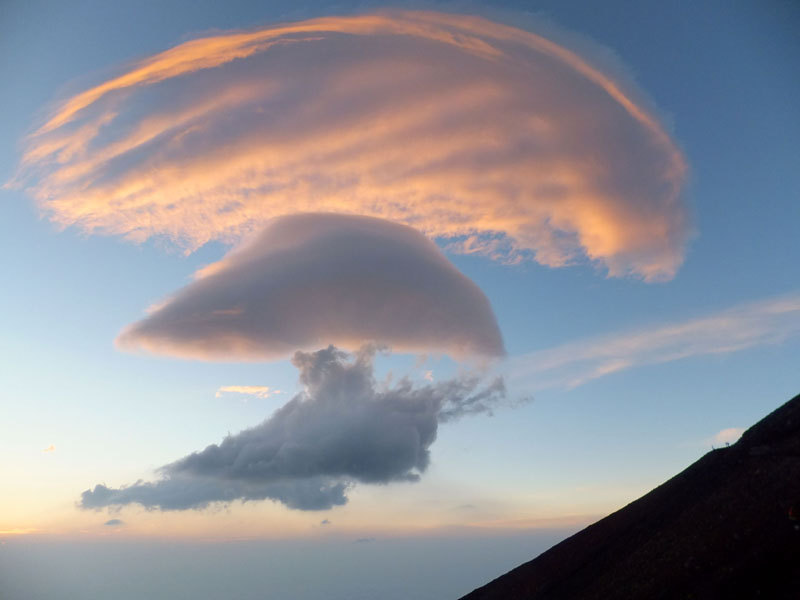 巨大な笠雲がめくるめく形を変え、なかなか幻想的。