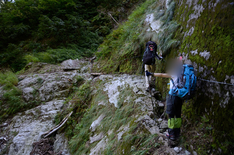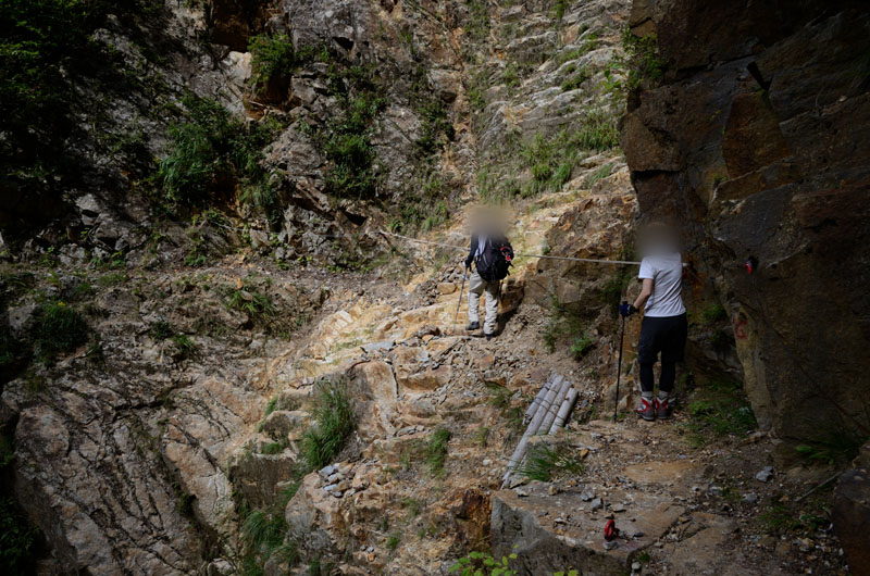 危険な場所は、手すり代わりに太い針金が2本通してあるため、