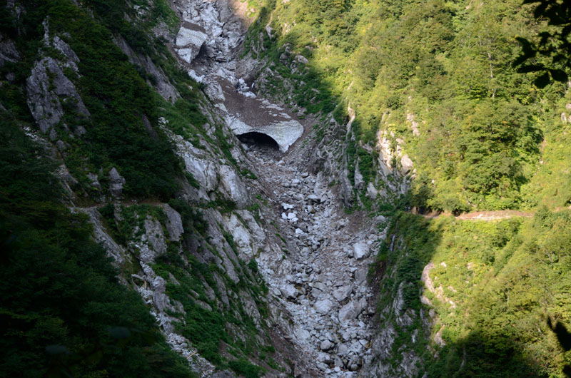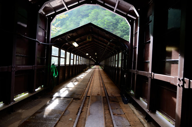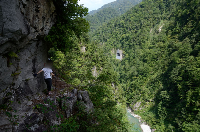 標高800m前後の黒部川沿いの岩壁を水平にくりぬいており、