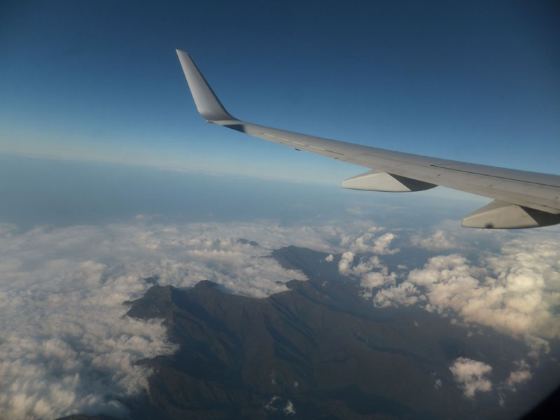 飛行ルート。空港周辺のルートは電子機器使用禁止のためレーダー等からの推測。