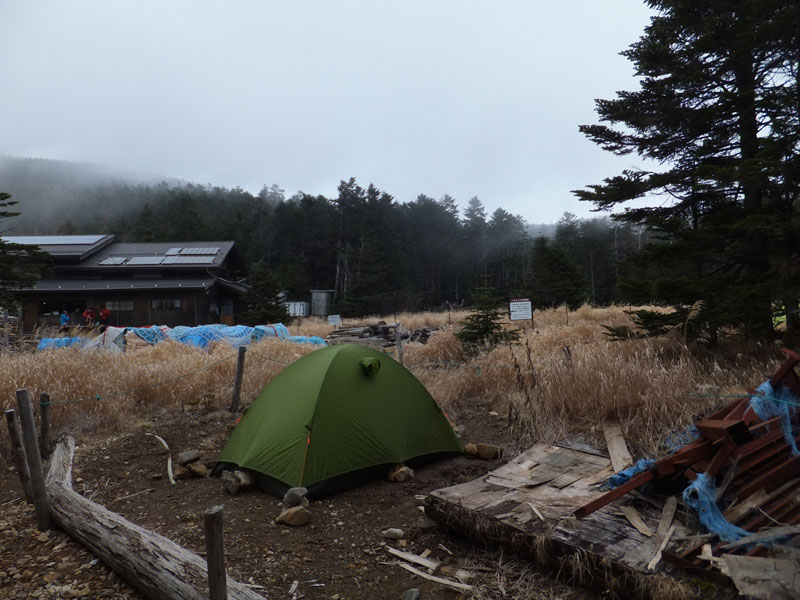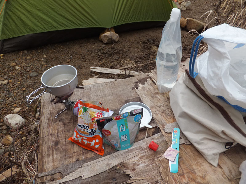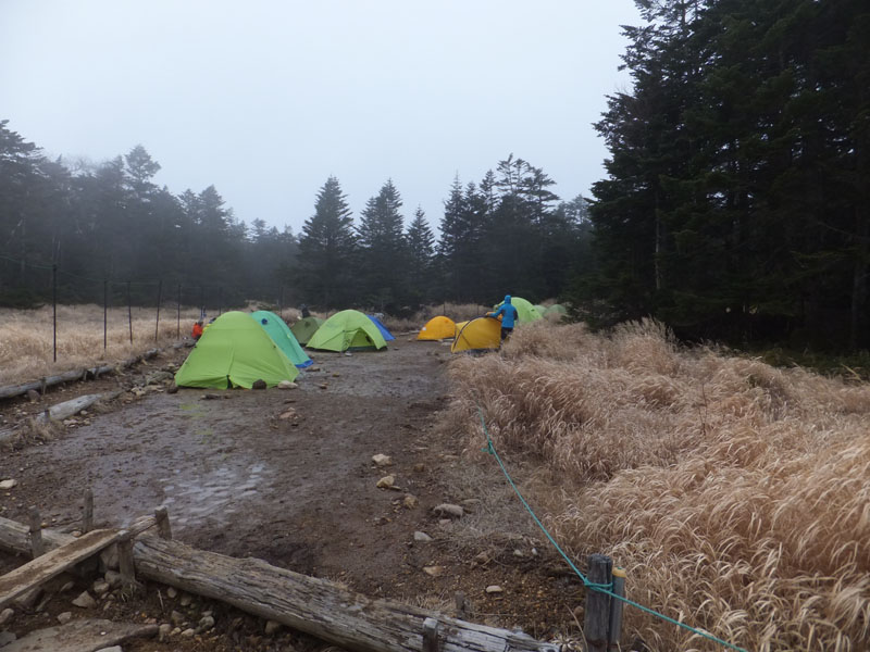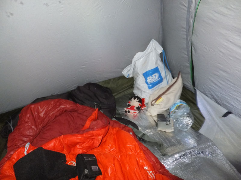 夜は雨が降ってきたが、テントが雨漏りするようでかなり浸水。