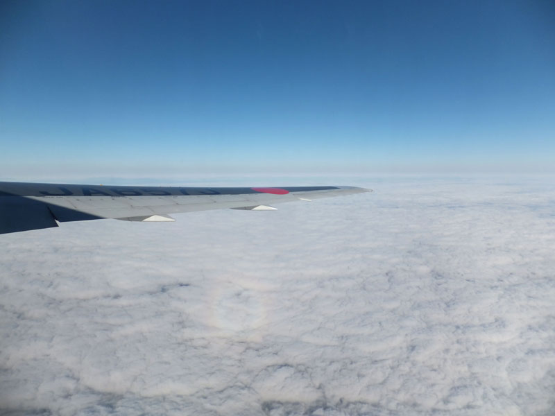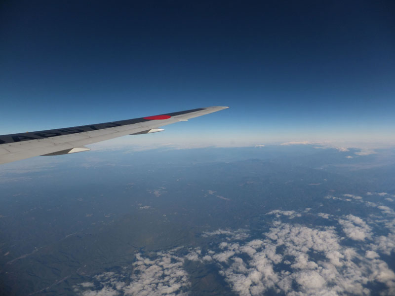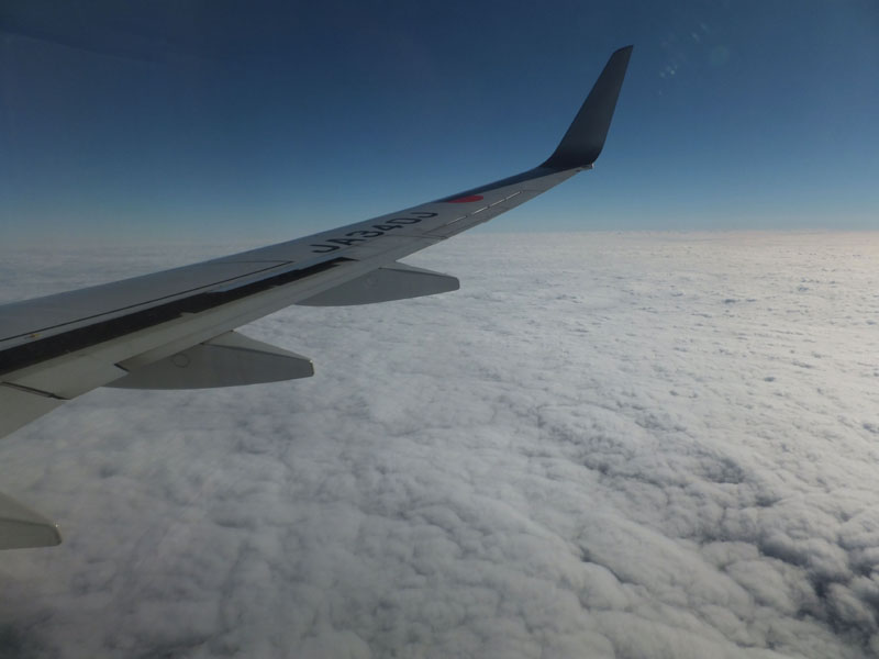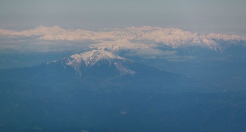 行きも帰りも高度8000m前後で眺めがよい。