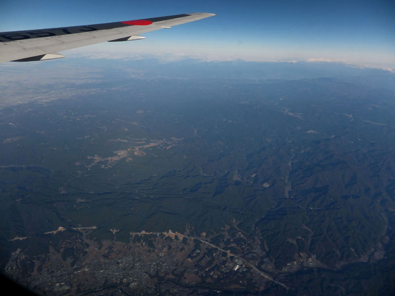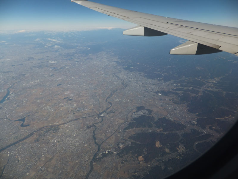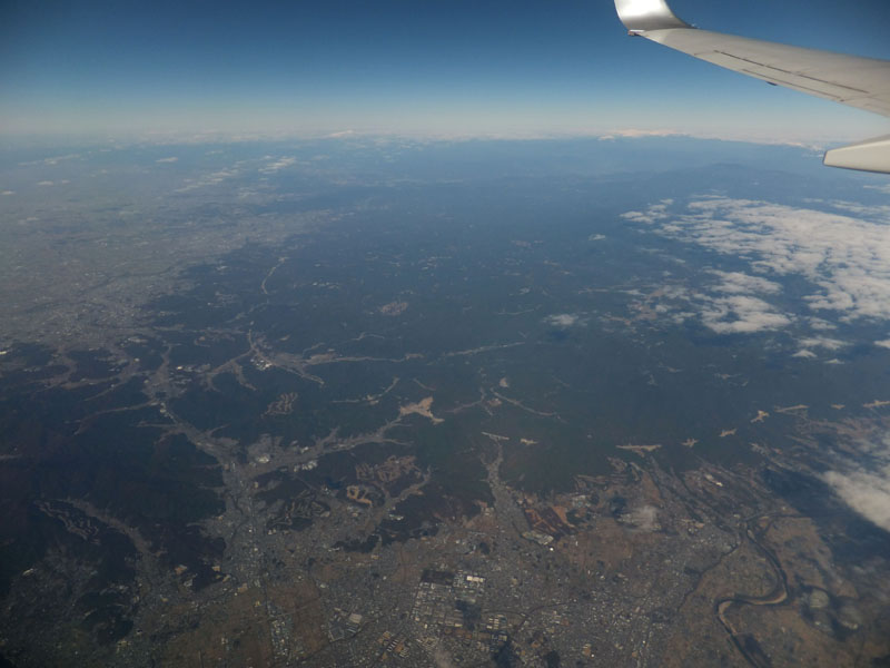 法隆寺の南側を通過し、新大阪駅直上を通過し伊丹空港へ。