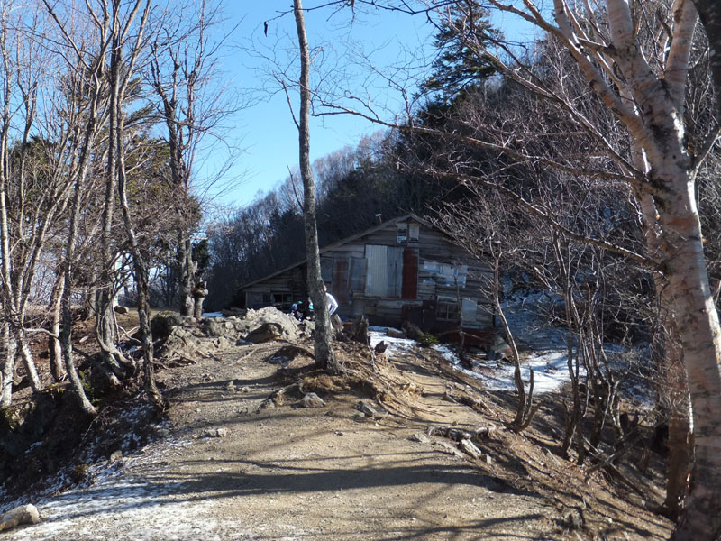 途中の白岩小屋。ここまでは雪はほとんどない。