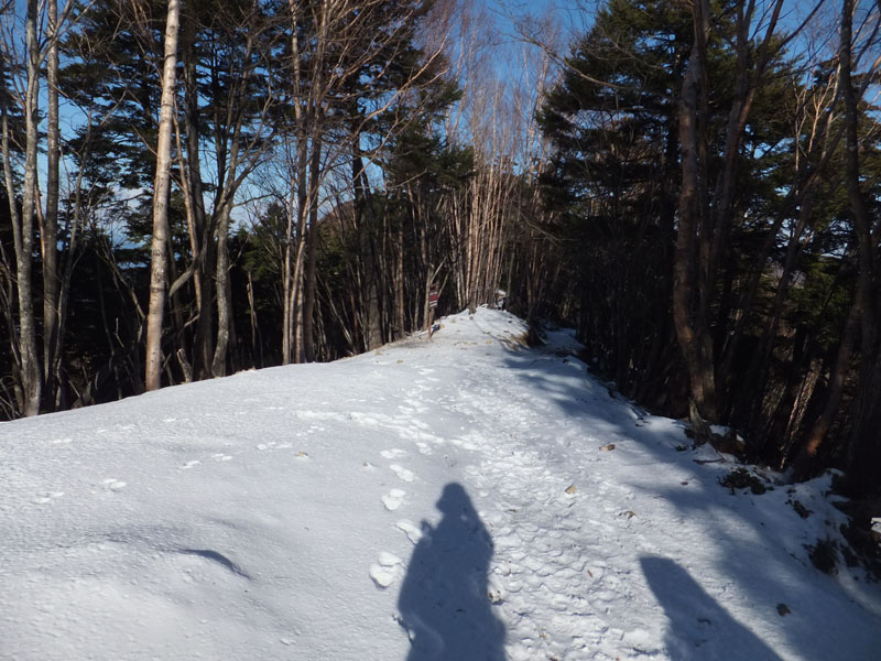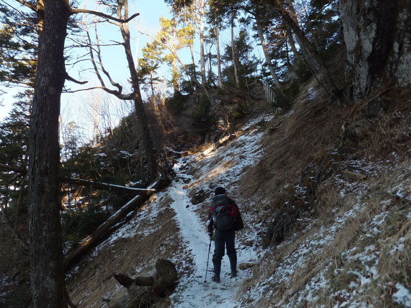 白岩山〜雲取山荘間のトラバースは凍結しておりアイゼン(4本でOK)が必要だ。