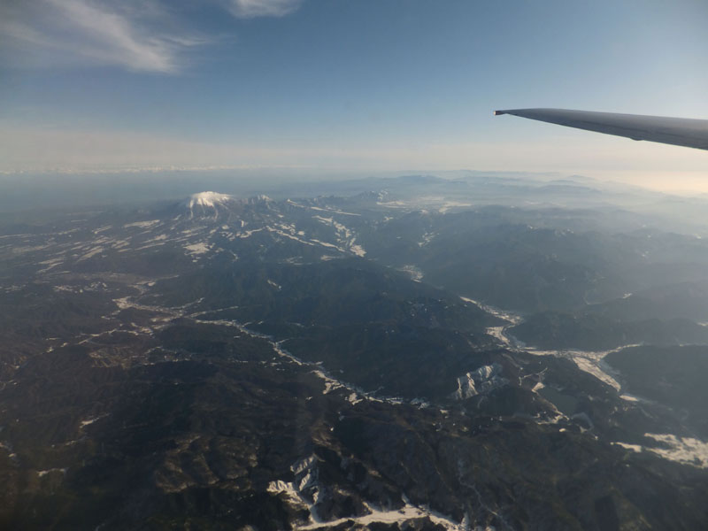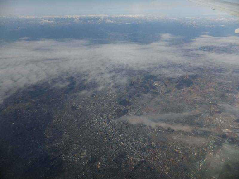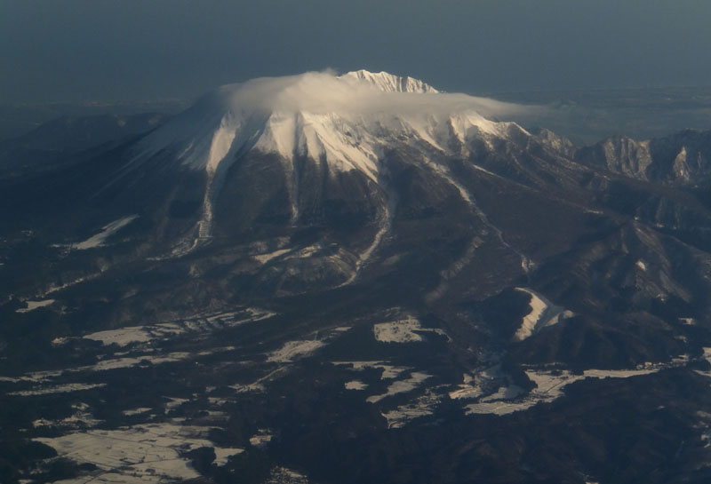 八ヶ岳や南アルプスは強い冬型で雲に包まれている。