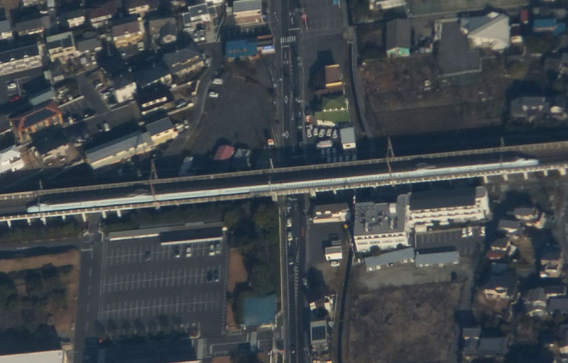 途中で新幹線と交差する。さくら8両編成だと思われる。