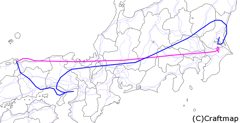 空港周辺のルートは電子機器使用禁止のためレーダー等からの推測。