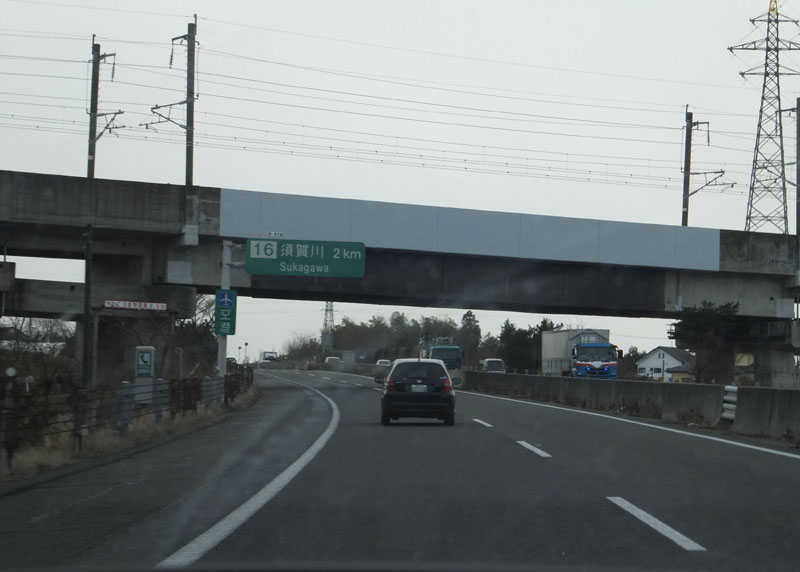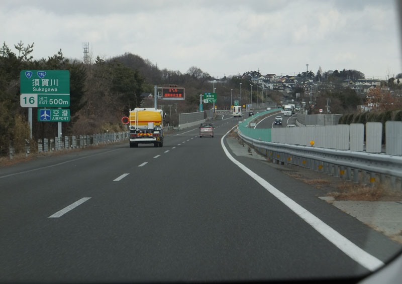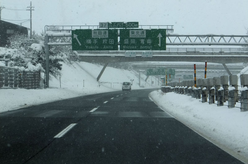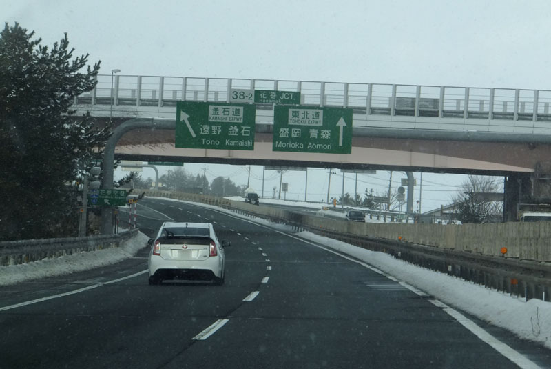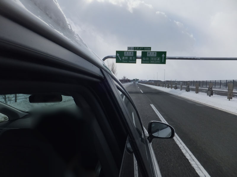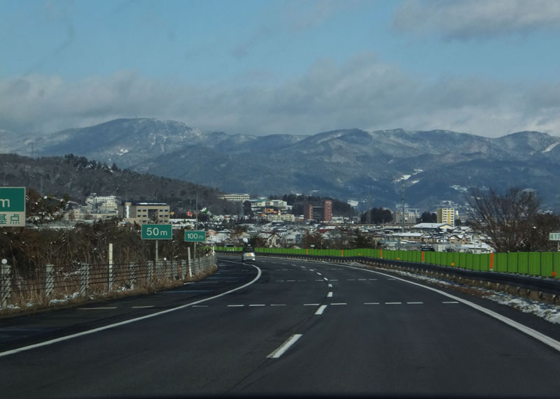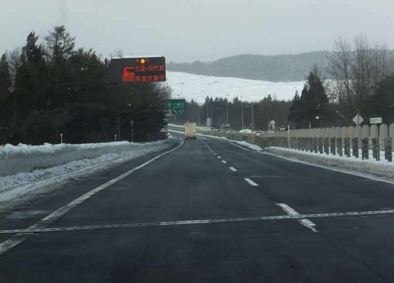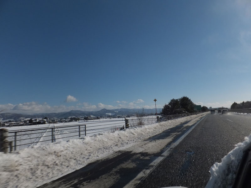 高速道路の除雪レベルは高く、ただのぬれた路面になっている。