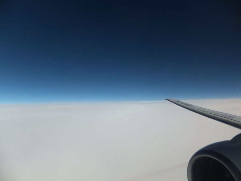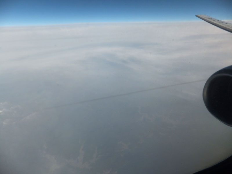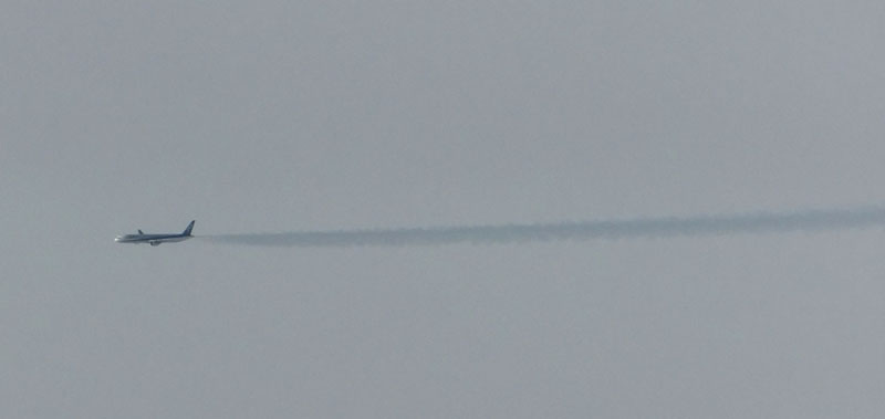 途中で飛行機雲を曳きながら飛ぶANA機と超高速ですれちがう。