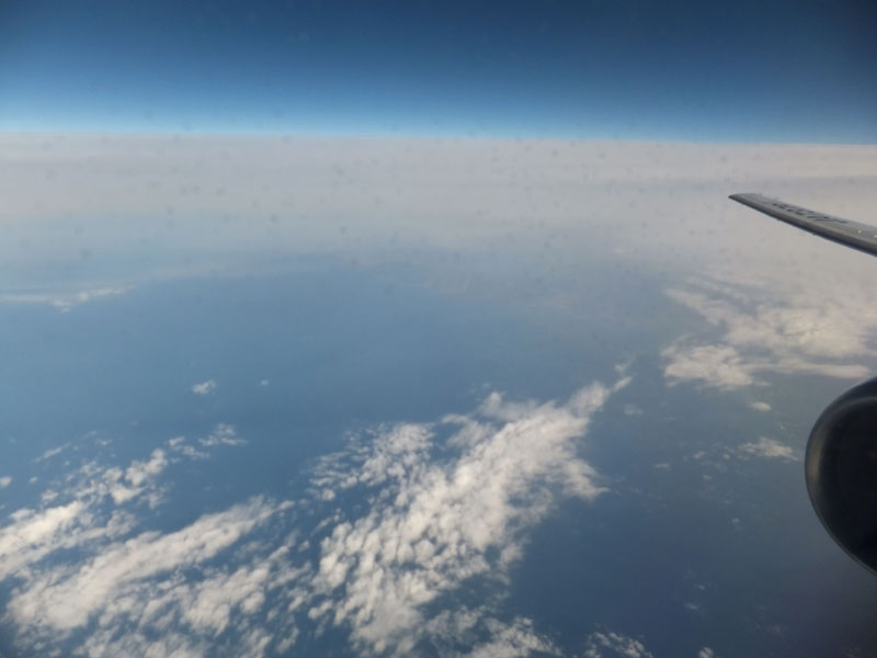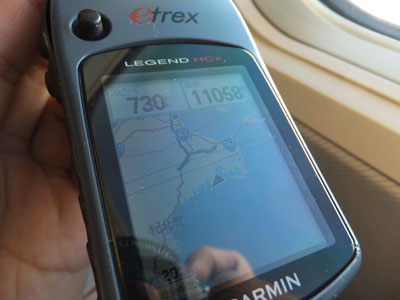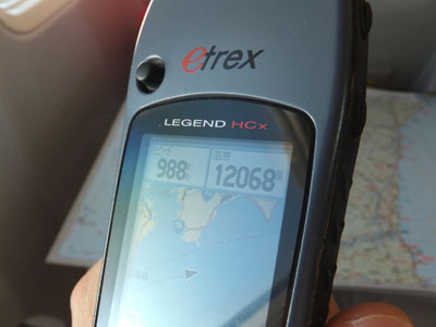 紀伊半島の先端を掠めるように通る。熊野本宮上空だ。