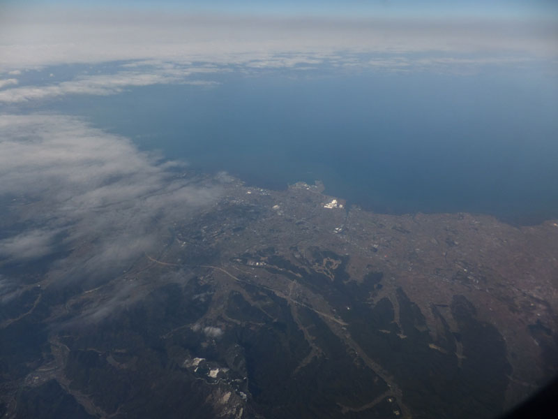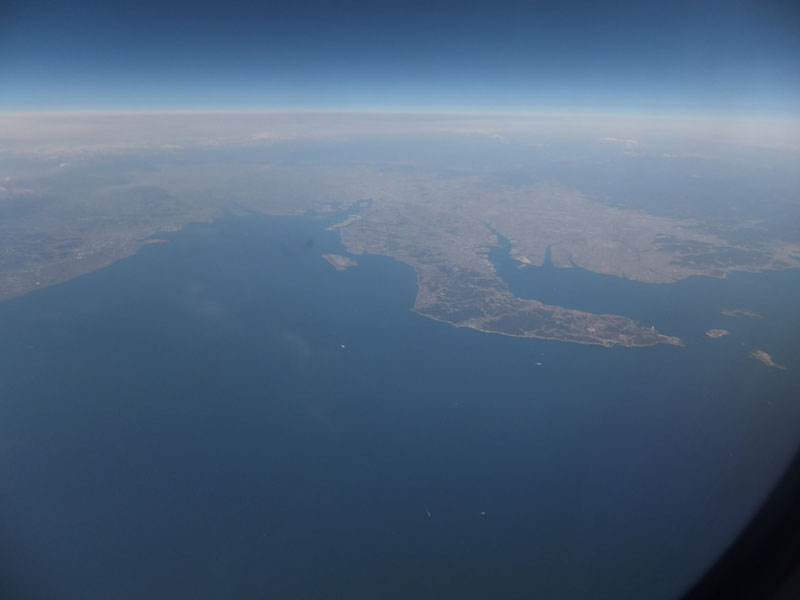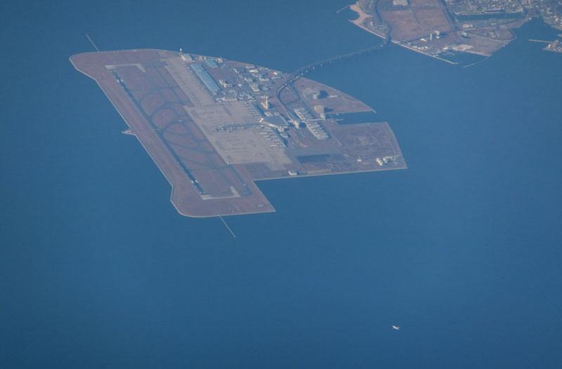 雲に隠れて見えにくいが関空が見える。