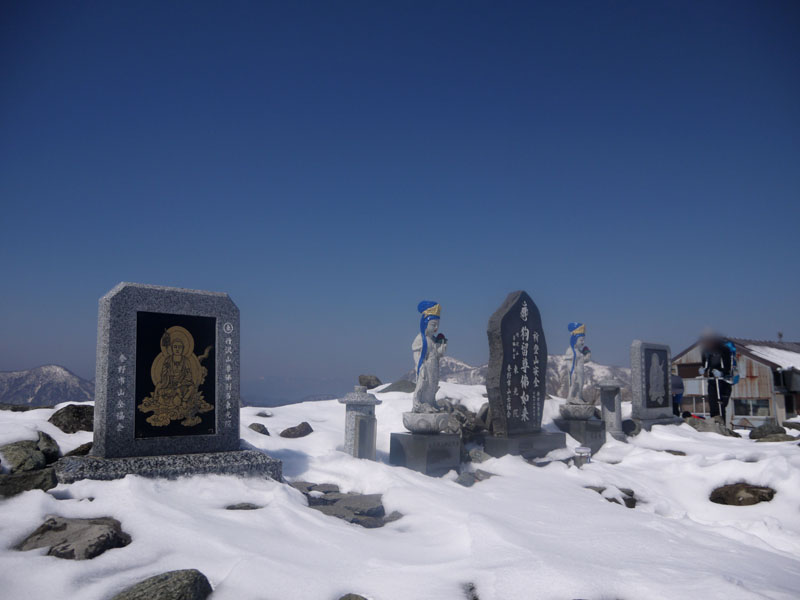 頂上の仏像も雪をまとってかっこいい。