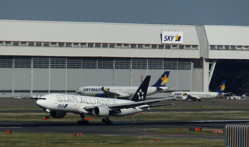 SKYのA330が駐機してある。6月中旬から運行開始の見通し。