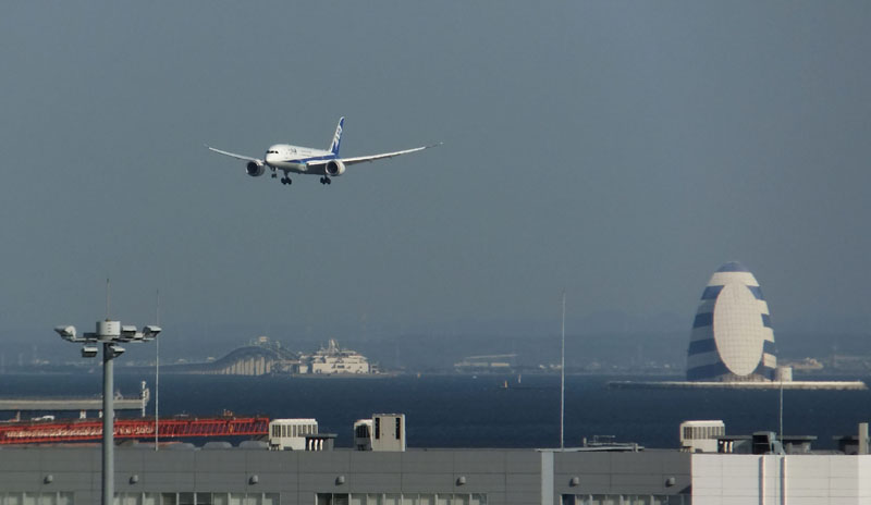 アクアラインと川崎人工島の奥に着陸機が見えていいアングルだ。