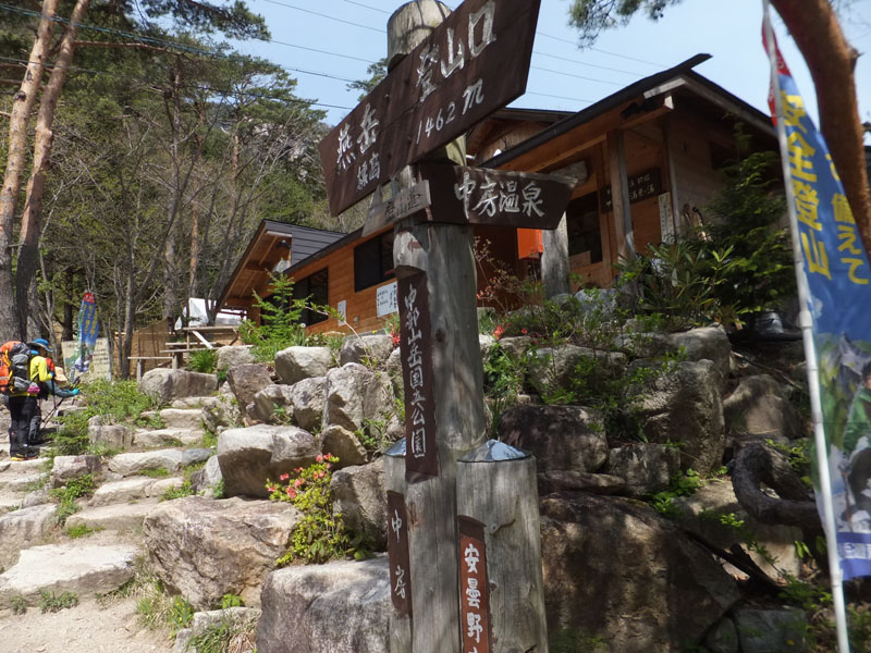 登山口の中房温泉から登り始める。