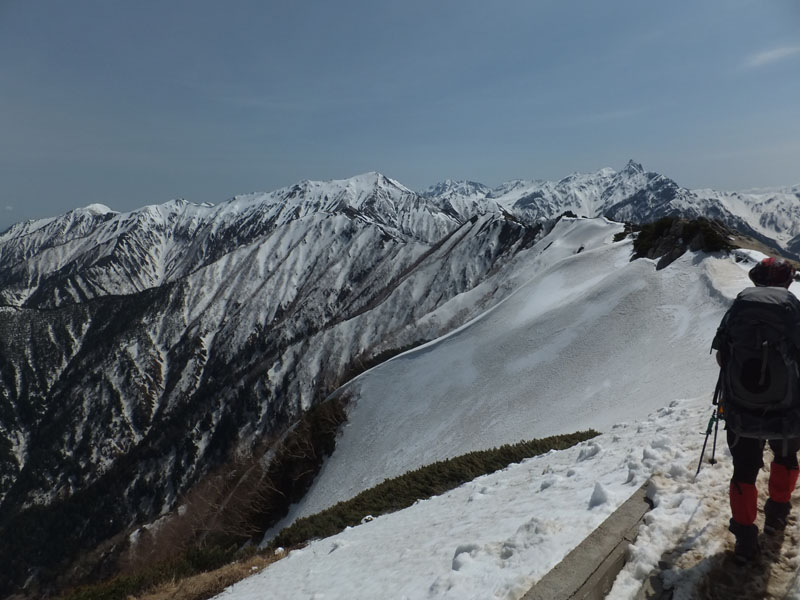 ばっちり槍ヶ岳が見える。いい天気だな。