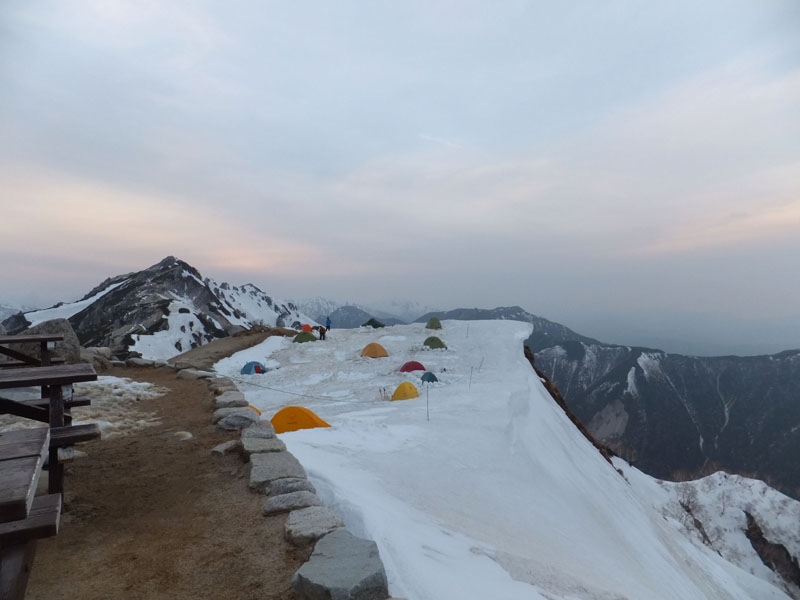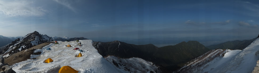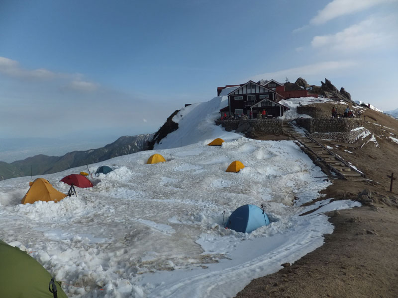 今回は3人での山行だが、トレーニングのため僕だけテント泊だ。