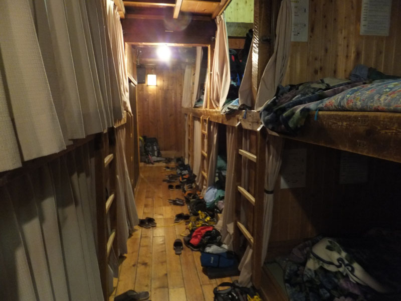 2段カイコ式で収容人数は多い。1人1畳程度とのこと。