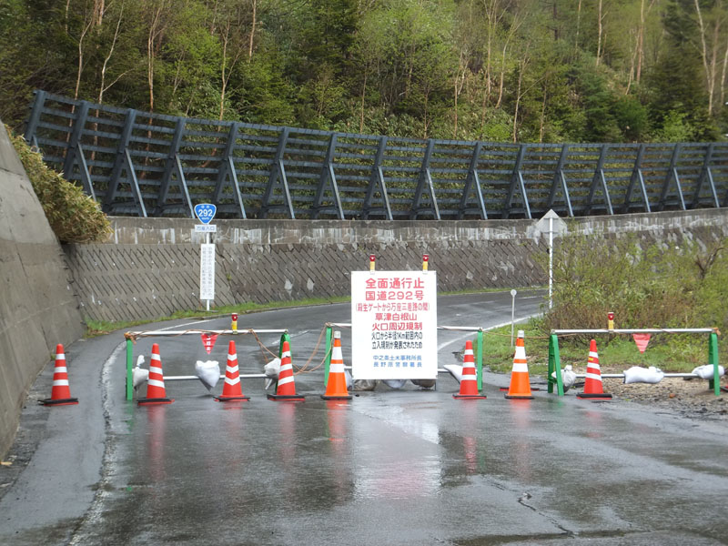 白根山方面は完全に通行止め。歩行者も不可だ。