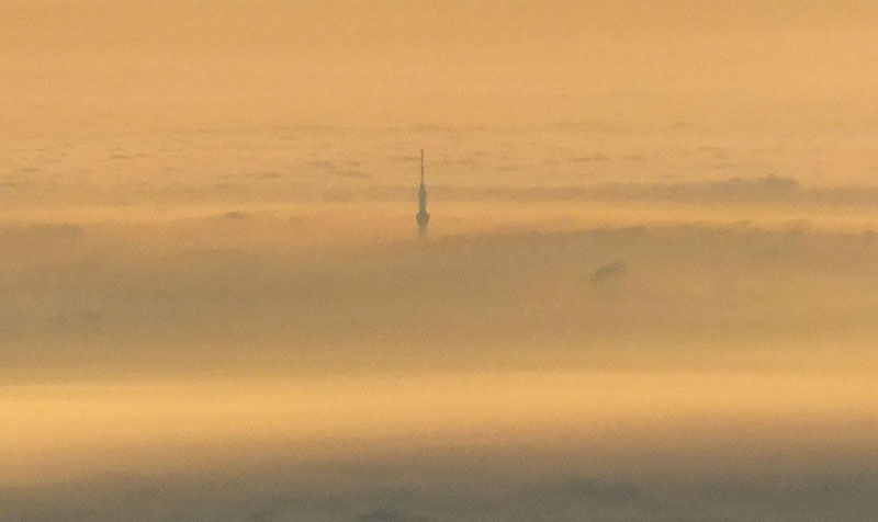 霞の先に浮かぶ東京スカイツリー。