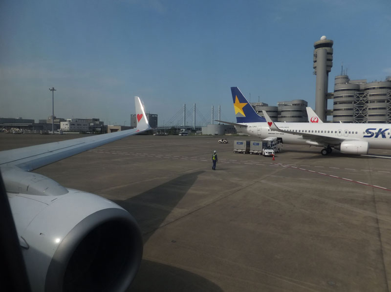 行きと違い、帰りは南風好天時モードでD滑走路へ着陸。
