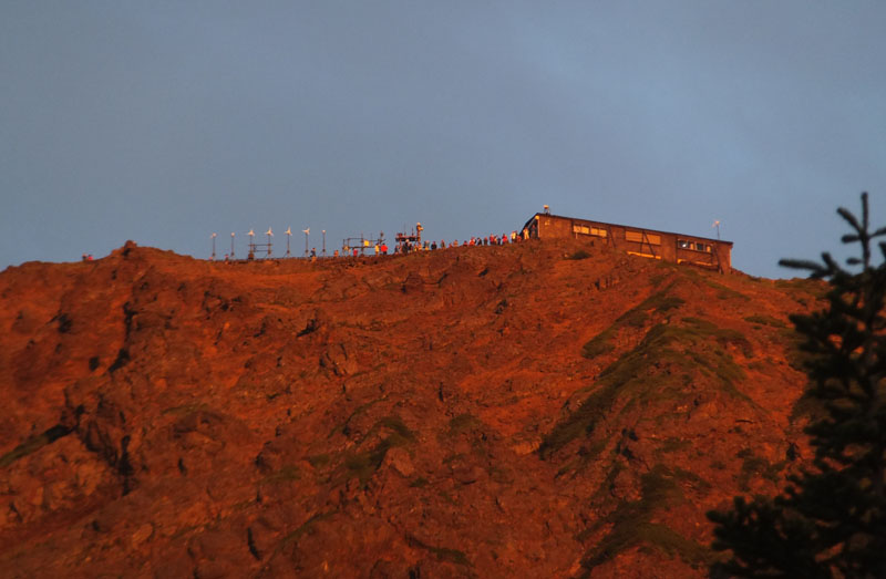 赤岳天望荘からも夕日見物の人が並んでいる。