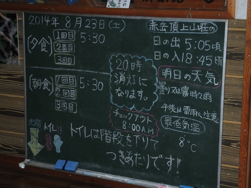赤岳頂上山荘では今朝の気温は8℃だったようだ。