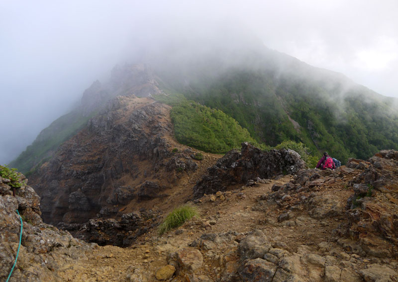 地蔵の頭まで登ると稜線だ。ガスが多い。