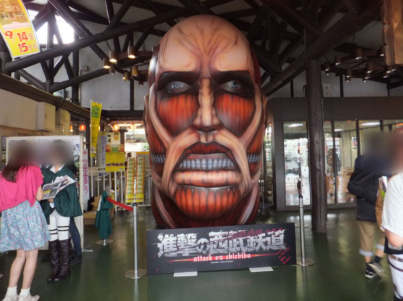 西武秩父駅では進撃の巨人に絡めたキャンペーンを展開中だった。