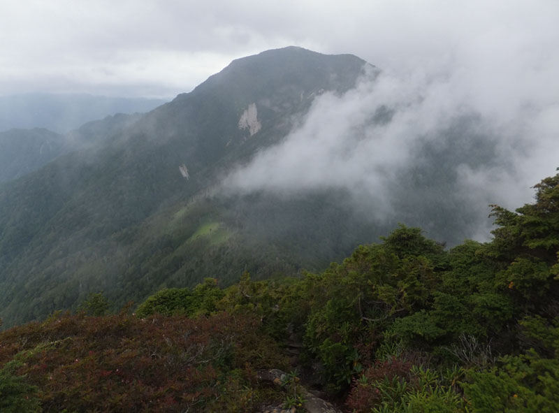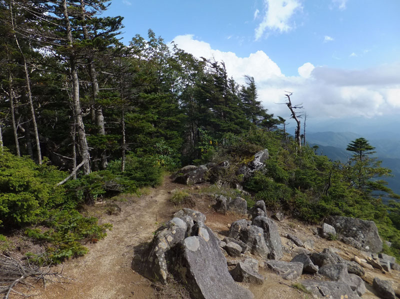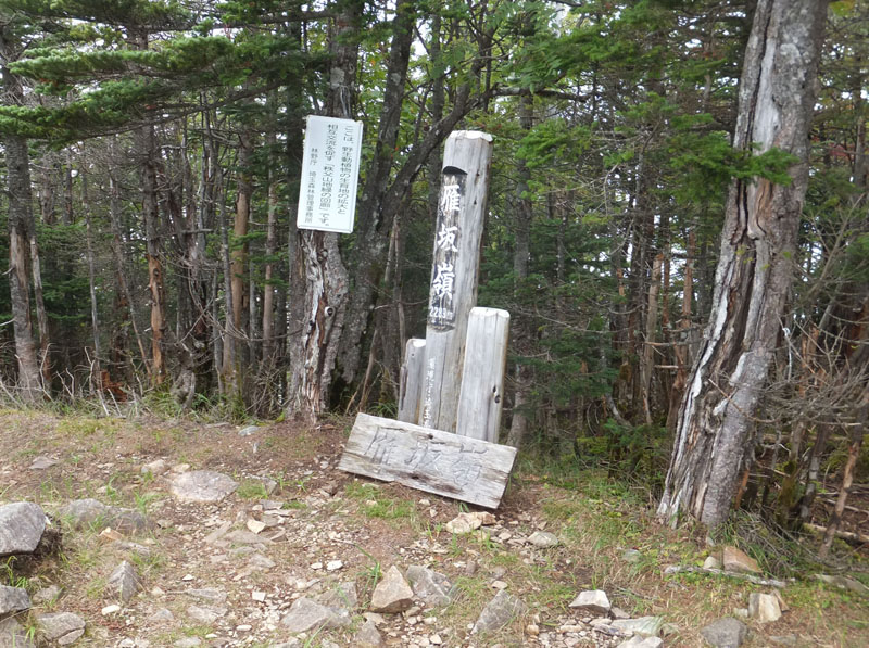 頂上部の僅かな範囲だけがハイマツで覆われた高山帯になっている。