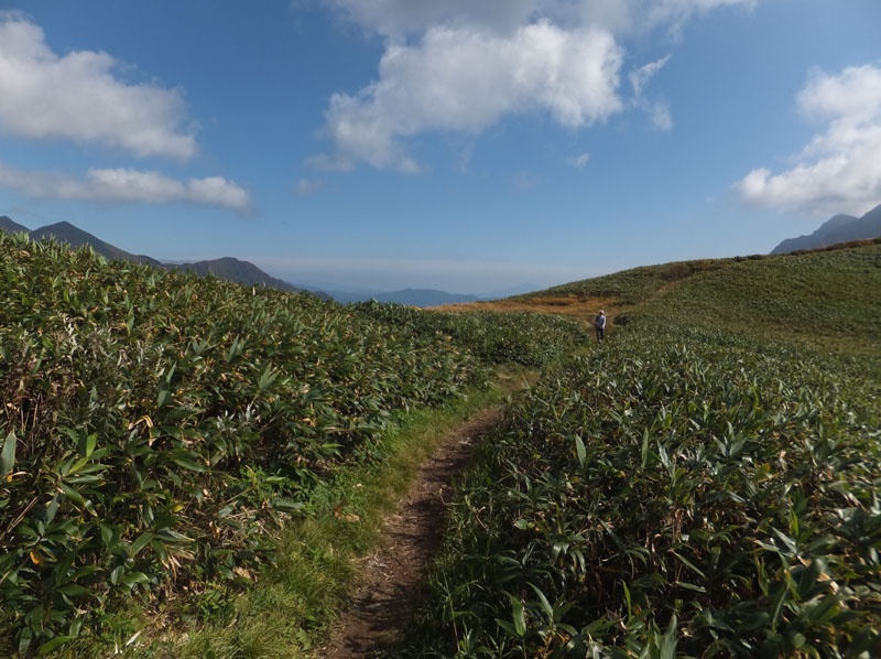 大変眺めが良いルートで、笹原・岩場・高層湿原など、
