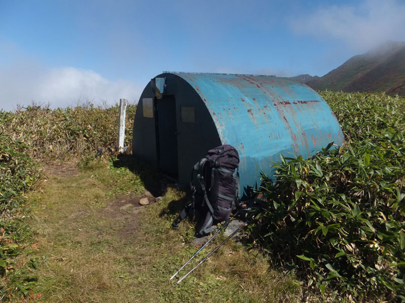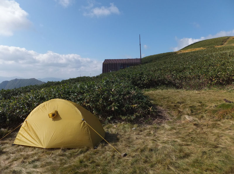 馬蹄形縦走路の中間地点にあり、ここに泊まると荷物はかなり軽量化できる。