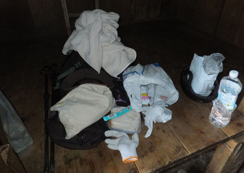 (軽量化のため水は最小限の持参としている。)
