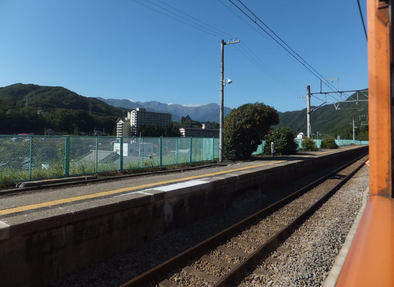 上牧駅からは谷川岳を見ることができる。