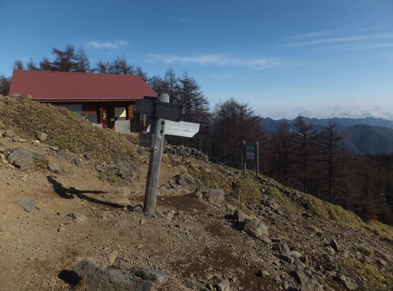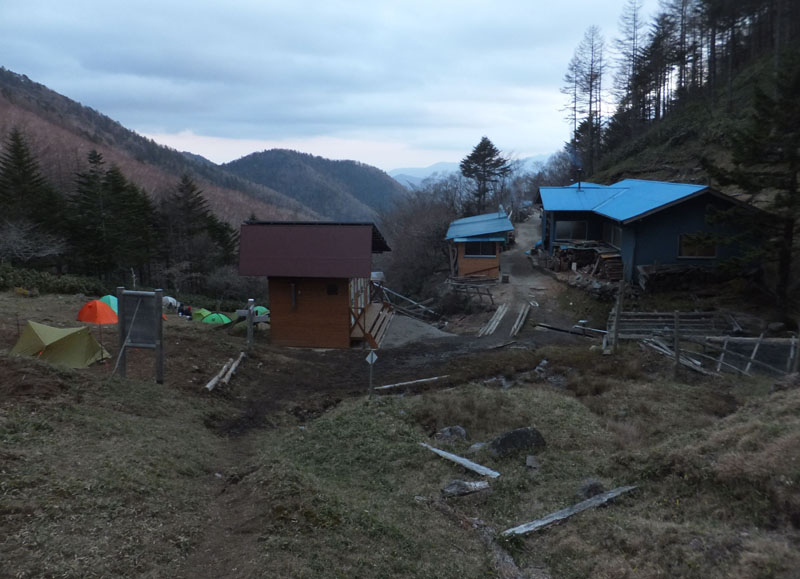 この小屋で予約していたがキャンセルして次の将監小屋を目指す。